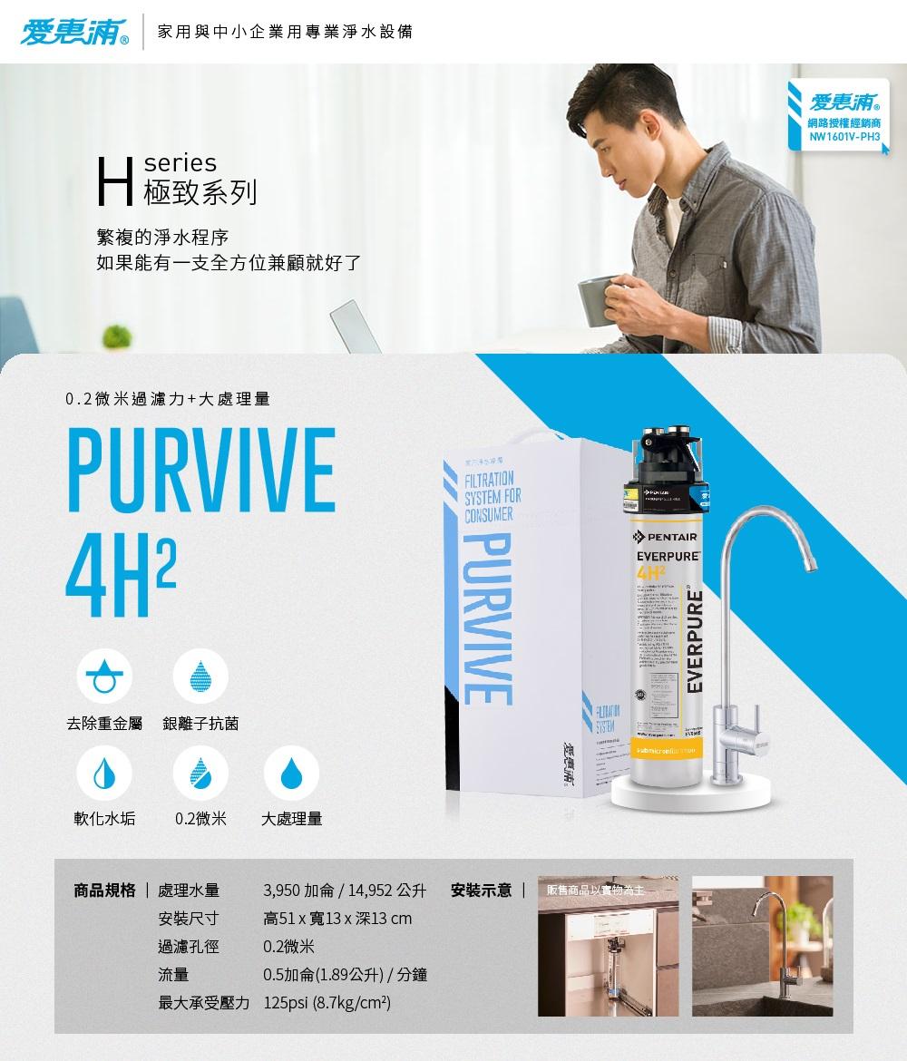 【愛惠浦 EVERPURE】 PURVIVE-4H2 生飲級單道式廚下型淨水器(可加購升級套件)NT$9,790 愛惠浦公司貨,品質穩定有保障 可濾除鉛、銅、鎘、汞等重金屬 人體無害的銀離子超強抗菌配方 【愛惠浦 EVERPURE】 PURVIVE-4H2 生飲級單道式廚下型淨水器(可加購升級套件) 數量 加入購物車 貨號: 4H²單道淨水器 分類: --愛惠浦淨水設備, EVERPURE | 愛惠浦, 選配飲水淨水設備 標籤: 愛惠浦 EVERPURE 描述 相關商品 【濱特爾 PENTAIR】4H2濾心 濾芯 美國進口平行輸入 EVERPURE (DIY) NT$2,800 加入購物車 【濱特爾 PENTAIR】4DC濾心 濾芯 美國進口平行輸入 EVERPURE (DIY) NT$2,800 加入購物車 特價 【愛惠浦 EVERPURE】HS288T PLUS+Waterdrop G2P600觸控雙溫生飲級RO逆滲透無桶直輸廚下型淨水器 NT$43,990 原始價格:NT$43,990。NT$35,990目前價格:NT$35,990。 加入購物車 【愛惠浦 EVERPURE】 4HL活性碳濾芯 原廠公司貨 NT$2,790 – NT$3,490 選擇規格 此產品有多種款式。 可在產品頁面選擇選項