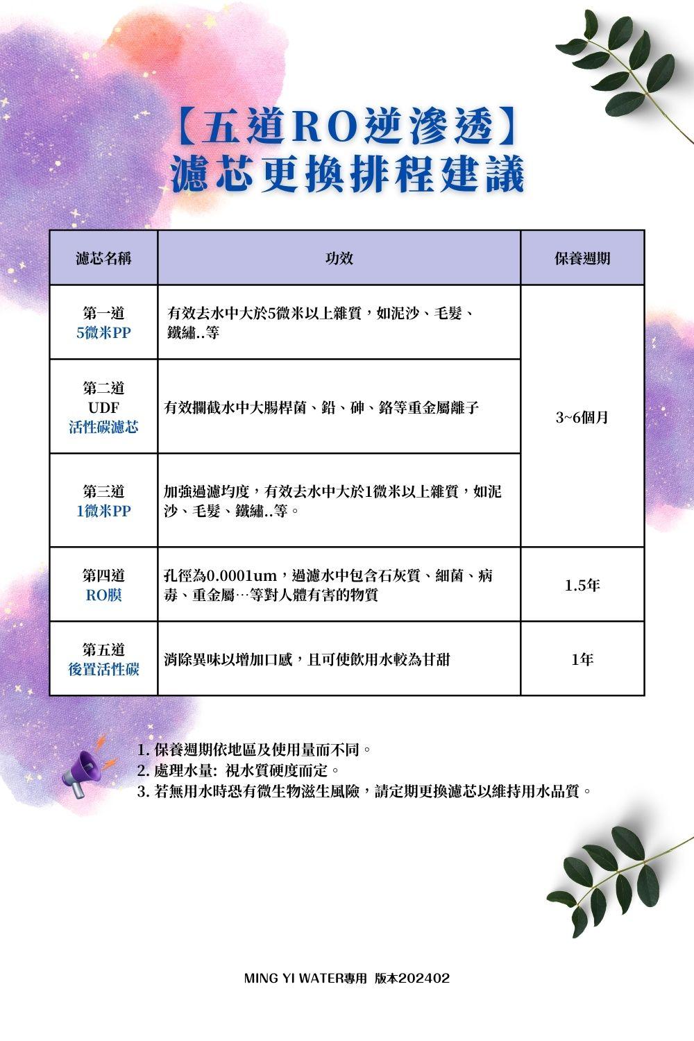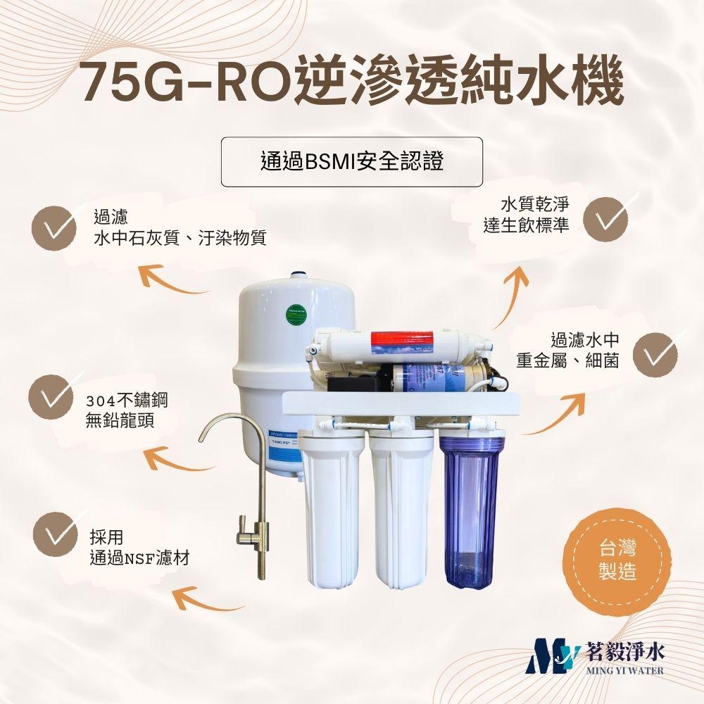 【茗毅】五道式 75G-RO逆滲透純水機NT$7,500 台灣製造,通過BSMI認證 過濾水中石灰質、汙染物質、重金屬、細菌…等 水質乾淨達生飲標準 採用通過NSF濾材 搭配304不鏽鋼無鉛龍頭 RO機尺寸:長37x寬18x高46cm 壓力桶尺寸:直徑28x高37cm 額定電壓:110V/60Hz 產地:台灣 *實際以出貨商品尺寸為主 【茗毅】五道式 75G-RO逆滲透純水機 數量 加入購物車 貨號: 75G-RO逆滲透 分類: --RO | 直輸機, 【全屋淨】, 選配飲水淨水設備 標籤: MING YI 描述 相關商品 DC-207-R 食品樹脂濾芯 查看內容 20吋大胖1微米濾芯 查看內容 200噸全戶濾芯 查看內容 小T33 椰殼顆粒活性碳濾心 後置活性碳濾心 NT$500 加入購物車