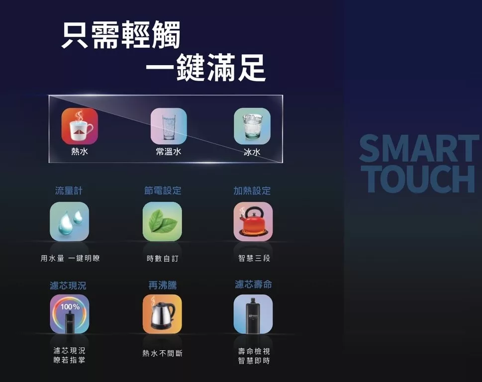• 濾心壽命檢視,智慧即時