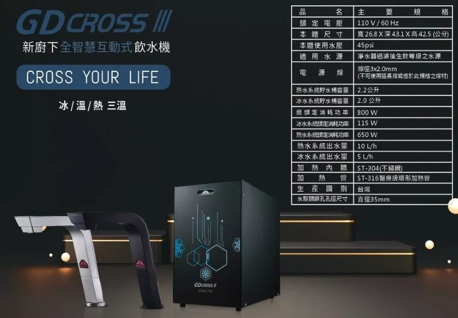【宮黛】GD CROSS III 新櫥下全智慧互動式(冰溫熱)飲水機—搭配宮黛GD IZERO II 直輸機 (全機台灣製造)