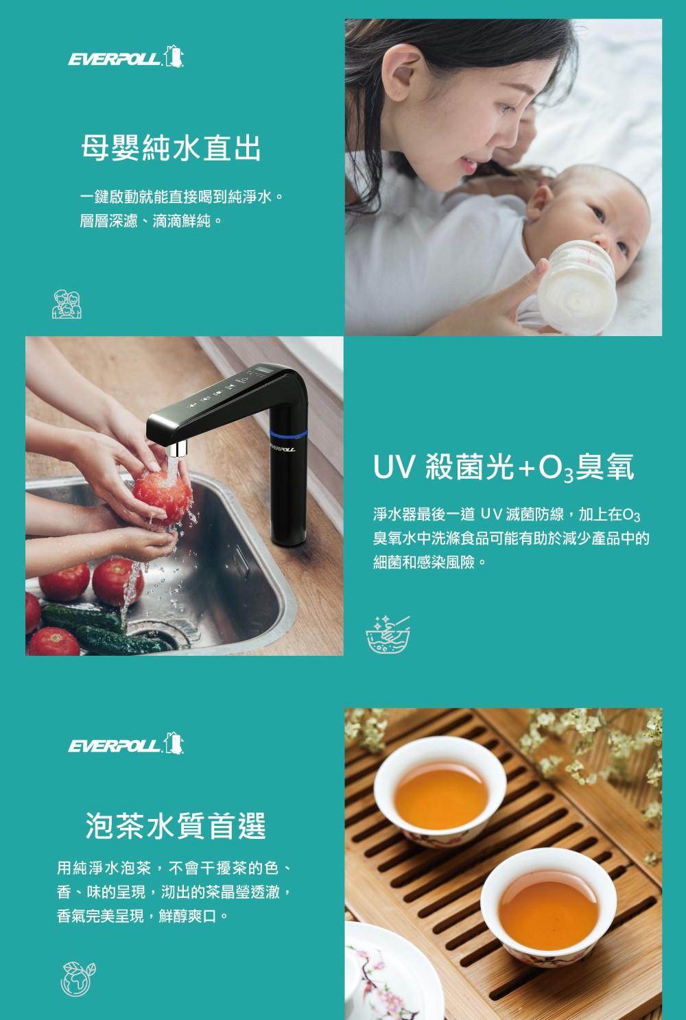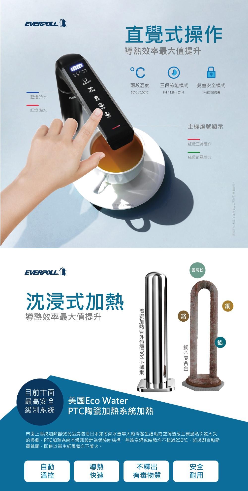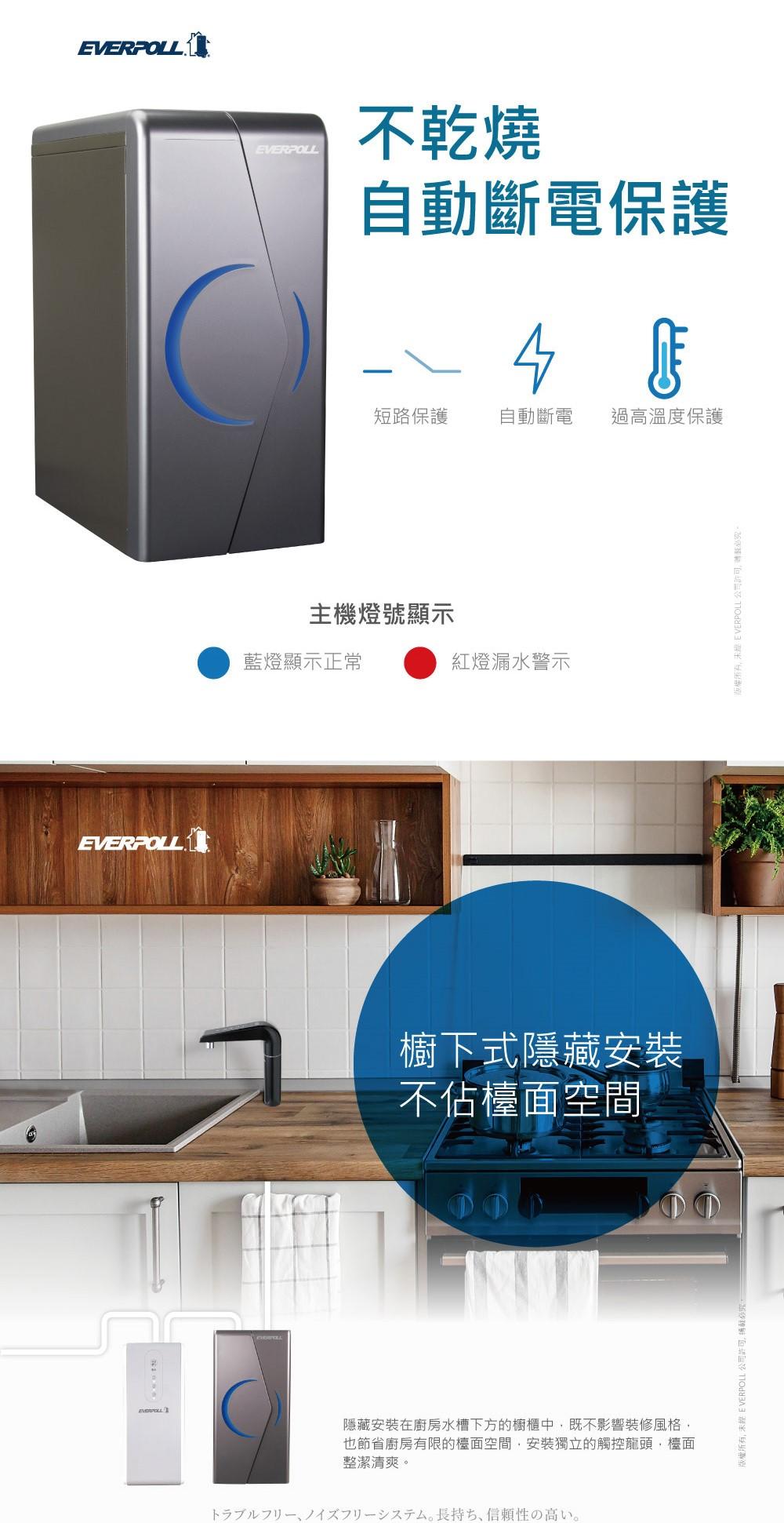 【EVERPOLL 愛科】 EVB-298-E廚下型雙溫UV觸控飲水機 (搭配RO600直出RO淨水器)NT$48,800 【愛科 EVB-298-E 廚下型調溫無壓飲水機 (旋鈕數位式多段龍頭)特色】 熱飲機內建自動補水裝置 啟動加熱完成僅約20分 UV滅菌+O3臭氧雙重保護 附有漏電斷路裝置 【愛科RO600特色】 直出式不需儲水桶 三道簡易式快拆濾心 採用最新奈米RO膜技術 主產品僅包含過濾設備,需加購龍頭 【EVERPOLL 愛科】 EVB-298-E廚下型雙溫UV觸控飲水機 (搭配RO600直出RO淨水器) 數量 加入購物車 貨號: EVERPOLL RO600-1-1 分類: EVERPOLL | 愛科 標籤: EVERPOLL 愛科 描述 額外資訊 選購區 單機, 加購 304不鏽鋼龍頭 相關商品 【EVERPOLL 愛科】傳家寶 全戶淨水系統 FH-301 NT$29,500 加入購物車 【EVERPOLL愛科】MF110多功能商用淨水濾芯 NT$5,250 加入購物車 【愛科 EVERPOLL】全戶AD-2000/TK-250專用濾芯(濾芯型號AD-02) NT$4,900 – NT$5,500 選擇規格 此產品有多種款式。 可在產品頁面選擇選項 【EVERPOLL 愛科】 RO-600/RO600 直出RO淨水器 NT$14,800 – NT$17,300 選擇規格 此產品有多種款式。 可在產品頁面選擇選項