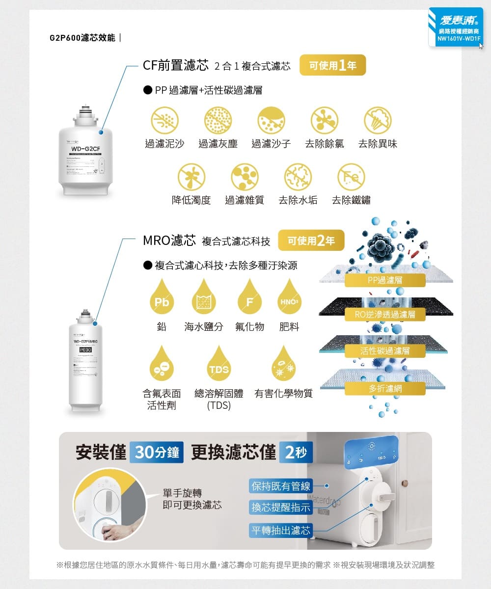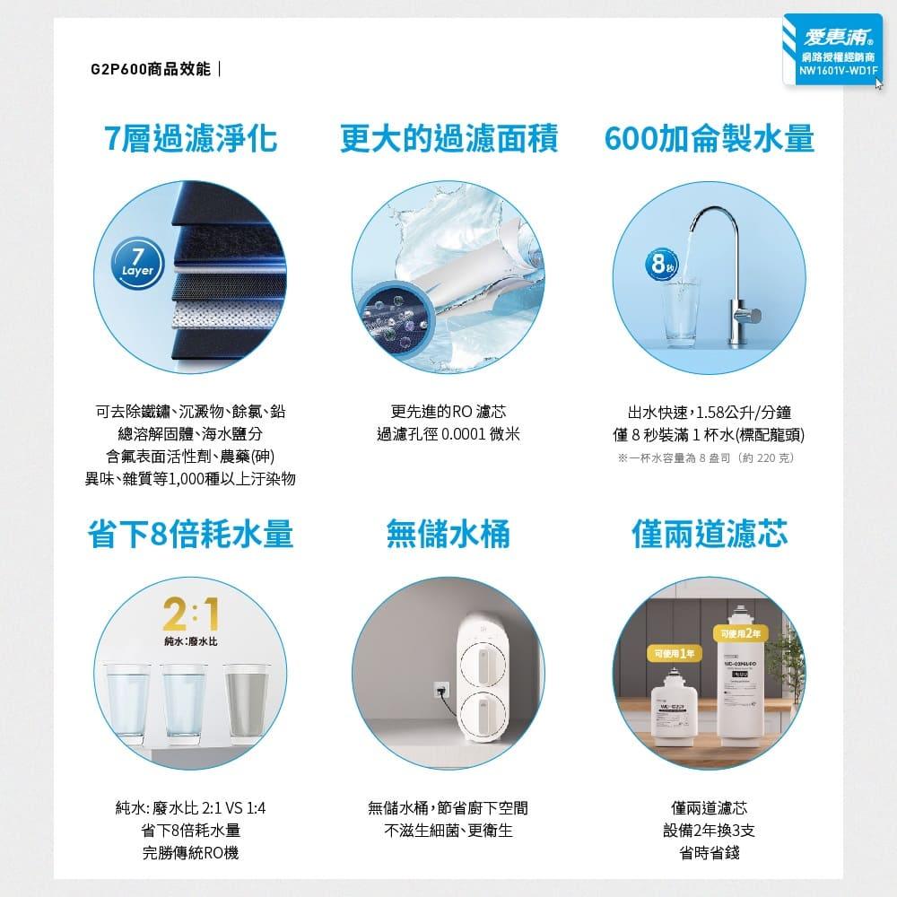 特價 【愛惠浦 EVERPURE】雙溫櫥下型 H188熱飲機+Waterdrop G2P600 RO逆滲透無桶直輸生飲淨水器/純水機NT$36,690 原始價格:NT$36,690。NT$28,990目前價格:NT$28,990。 【愛惠浦 EVERPURE】雙溫櫥下型 H188熱飲機+Waterdrop G2P600 RO逆滲透無桶直輸生飲淨水器/純水機 數量 加入購物車 分類: --愛惠浦淨水設備, EVERPURE | 愛惠浦 描述 相關商品 【愛惠浦 EVERPURE】ADC活性碳濾芯 原廠公司貨 NT$3,590 – NT$4,290價格範圍:NT$3,590 到 NT$4,290 選擇規格 此產品有多種款式。 可在產品頁面選擇選項 【愛惠浦 EVERPURE】 PURVIVE-BH2 生飲級單道式廚下型淨水器(可加購升級套件) NT$9,590 加入購物車 【愛惠浦 EVERPURE】 H300NXT活性碳濾芯 原廠公司貨 NT$4,590 – NT$5,290價格範圍:NT$4,590 到 NT$5,290 選擇規格 此產品有多種款式。 可在產品頁面選擇選項 【愛惠浦 EVERPURE】 PURVIVE-4H2 生飲級單道式廚下型淨水器(可加購升級套件) NT$9,790 加入購物車