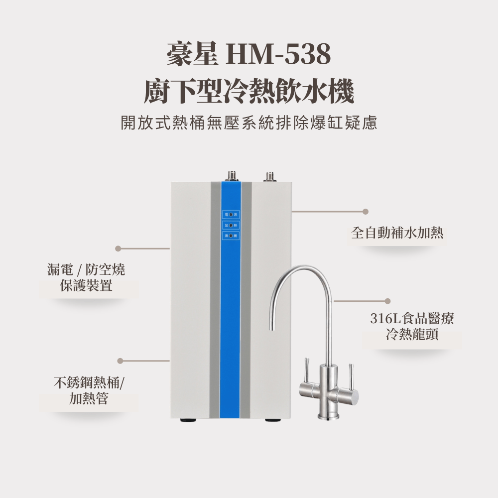 - 使用安全:開放式無壓系統,飲水機結構採用安全無壓設計,使用安全無虞無爆缸危險