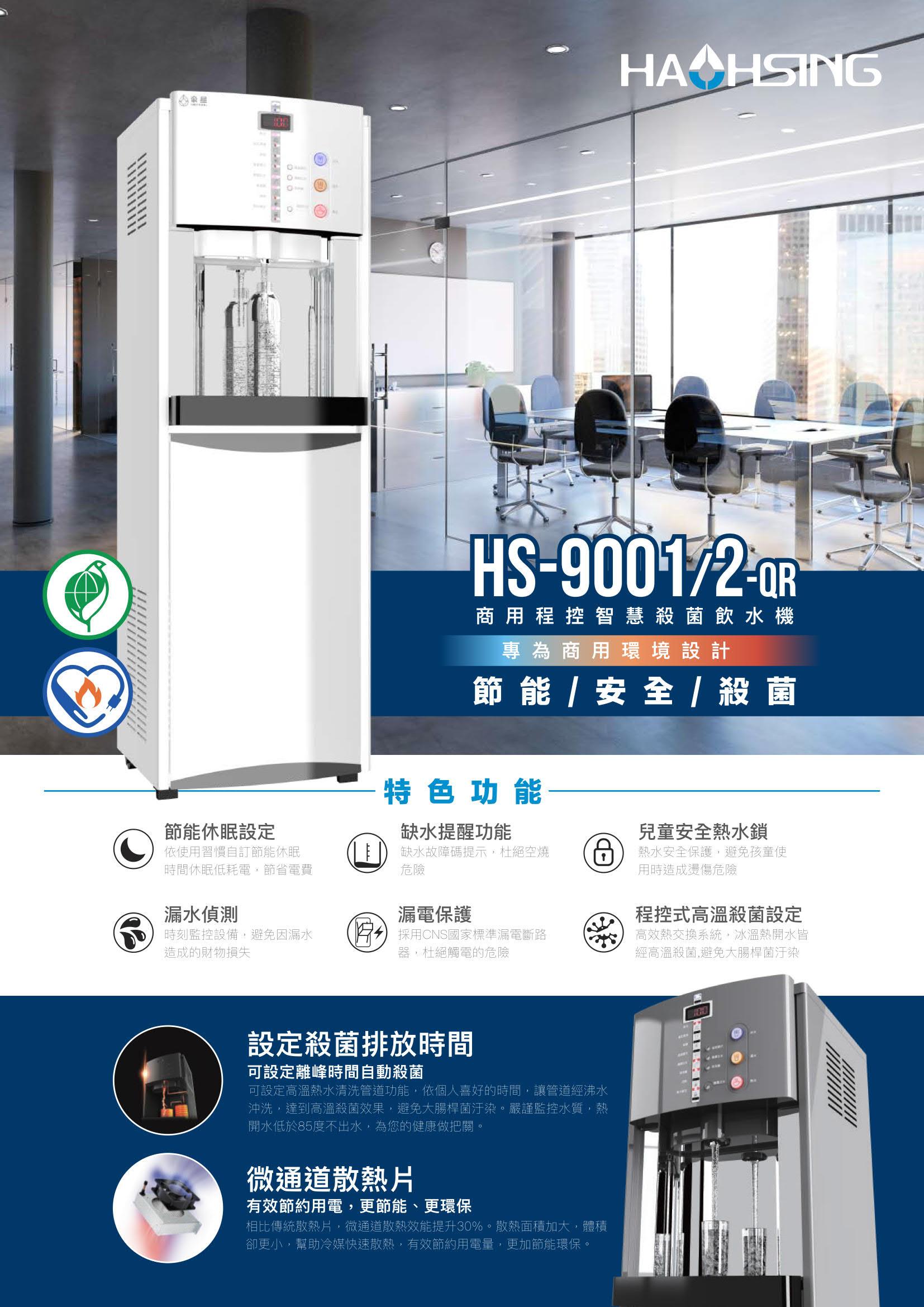 【豪星】HS-9001 智慧熱交換飲水機(冰溫熱) (彩灰/晶亮白)NT$32,800 程控智慧殺菌功能 高效熱交換系統 熱水安全鎖 節能設定功能 微通道散熱片迅速製冷 五道深層淨化過濾 【豪星】HS-9001 智慧熱交換飲水機(冰溫熱) (彩灰/晶亮白) 數量 加入購物車 分類: HAOHSING | 豪星 標籤: 豪星 描述 相關商品 【豪星】HM-190 桌上型RO飲水機 NT$22,800 選擇規格 此產品有多種款式。 可在產品頁面選擇選項 【豪星】HM-538廚下型冷熱飲水機(含316L雙溫龍頭)–需另選購淨水器 NT$18,800 加購飲水淨水設備 【豪星】HS-M3 廚下型冰溫熱飲水機UV(搭配 HS-800G 廚下直輸RO機) NT$59,600 選擇規格 此產品有多種款式。 可在產品頁面選擇選項 【豪星】 PYXIS H1 智慧熱交換飲水機 NT$46,800 加入購物車