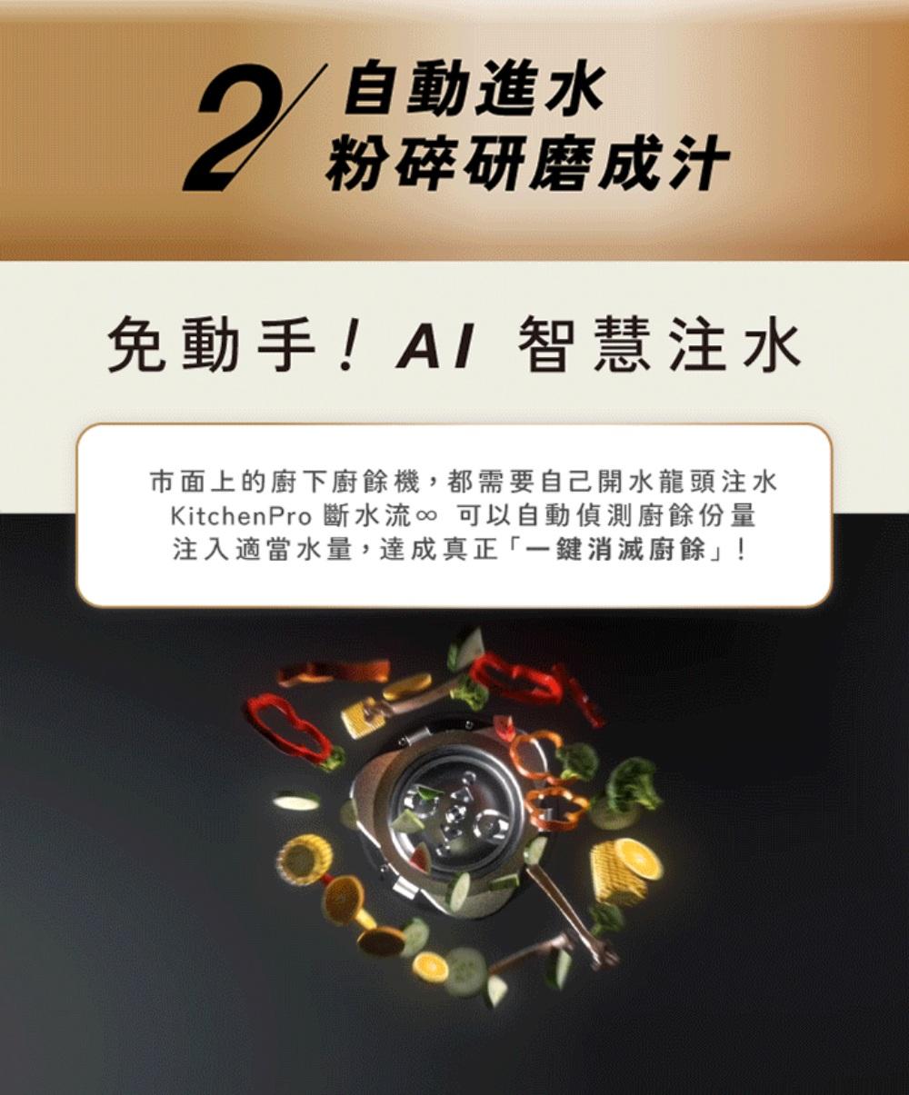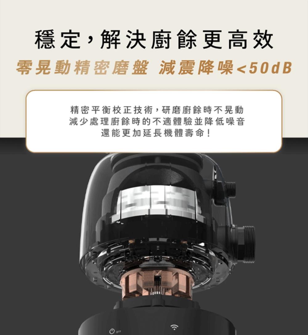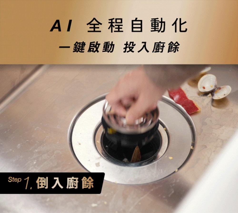 採用 AI 系統能自動偵測廚餘硬度與水管狀況,精準調整進水與研磨流程,是智慧、省力的好幫手。 -