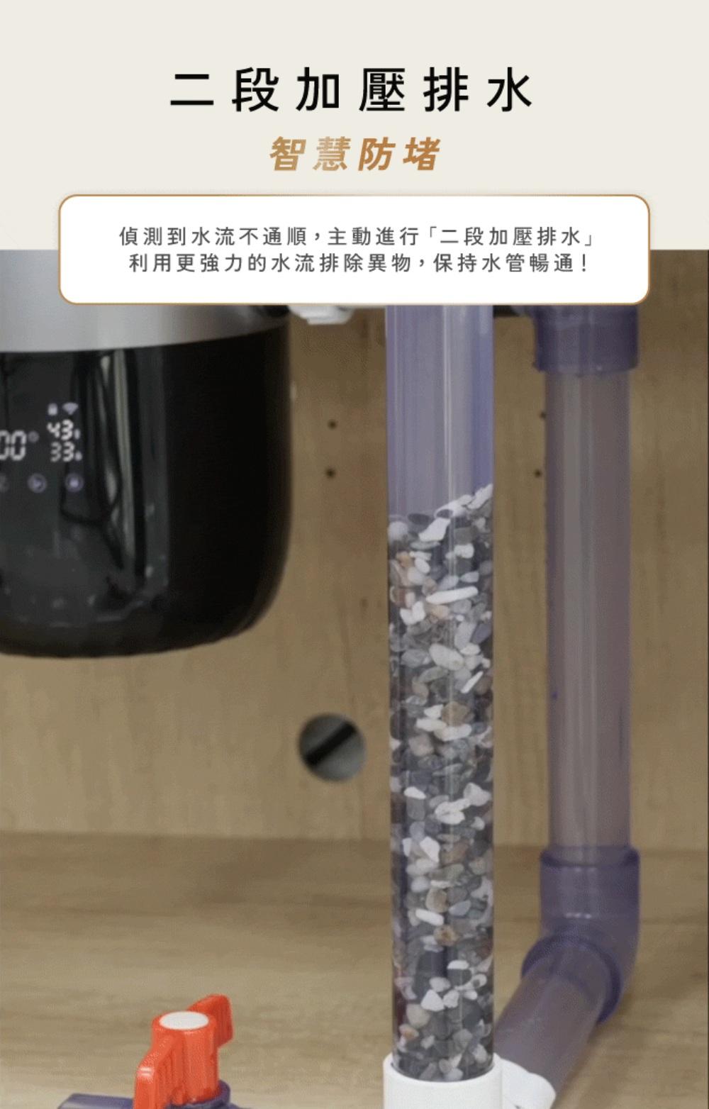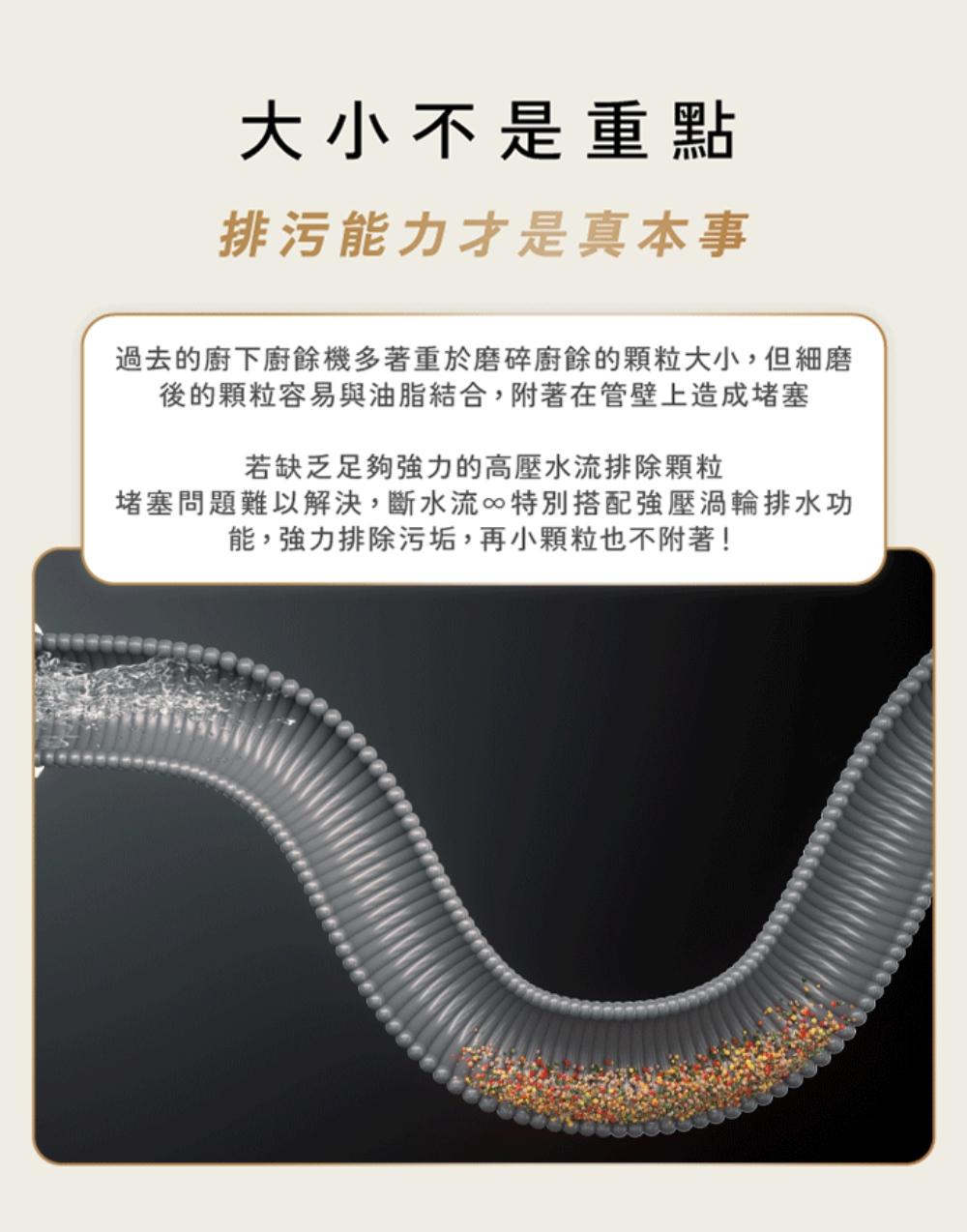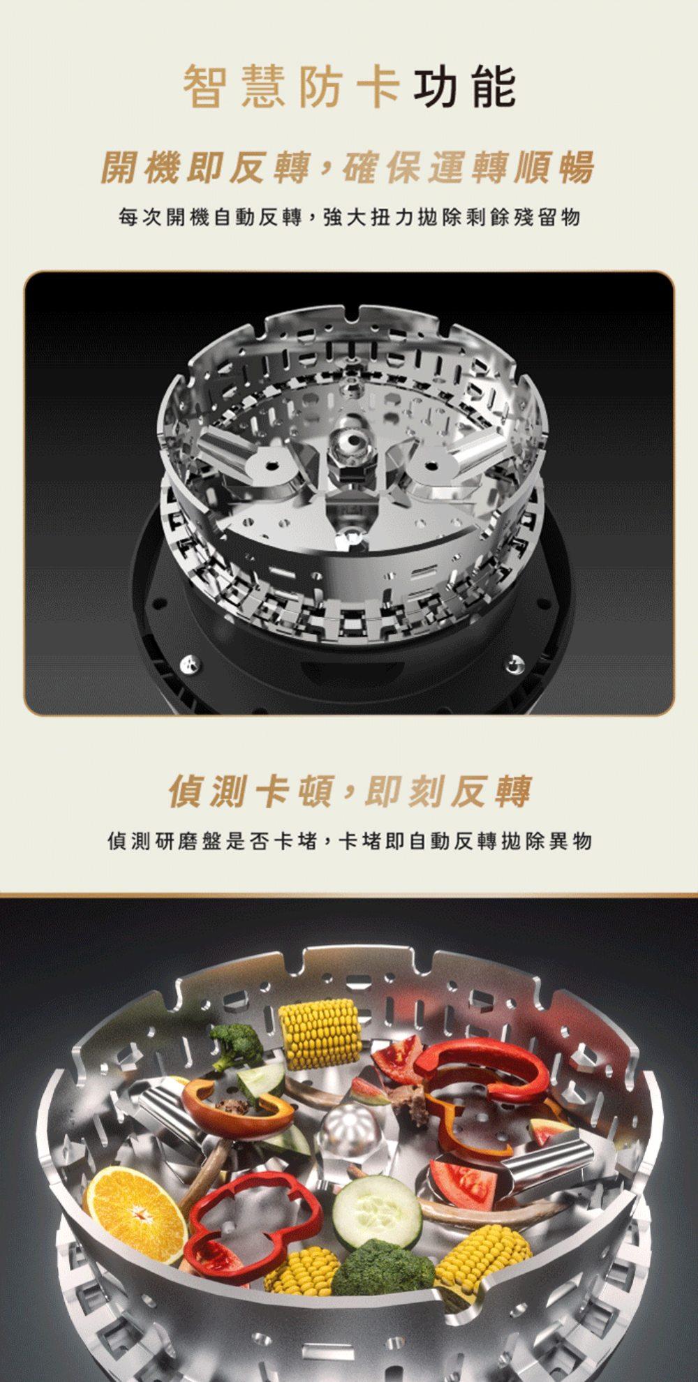 採用 AI 系統能自動偵測廚餘硬度與水管狀況,精準調整進水與研磨流程,是智慧、省力的好幫手。 -