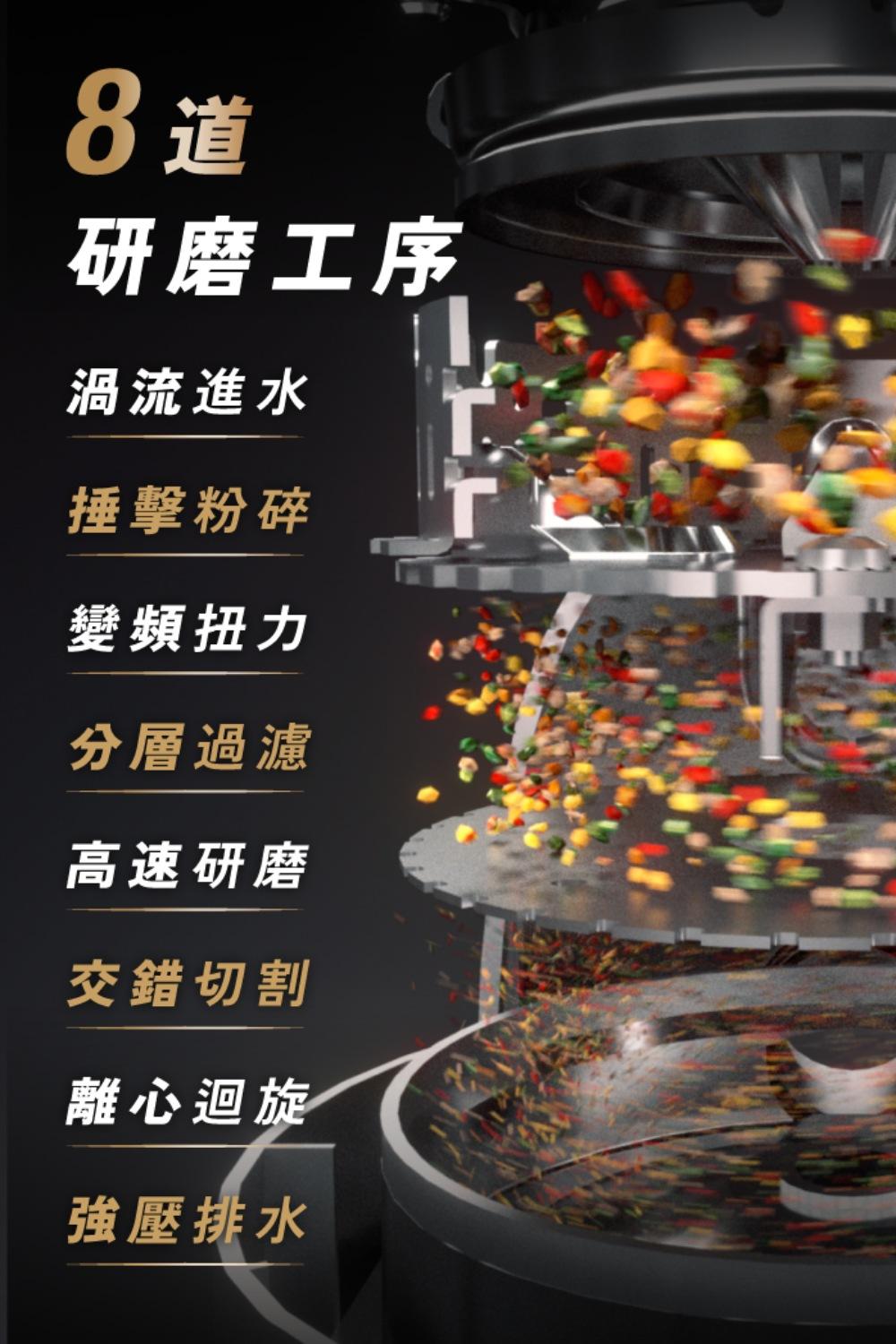 德國變頻無刷馬達與精密平衡研磨盤,搭配自動反轉防卡功能,運作平順且噪音低於 55 dB,即使長輩也能安心使用。 -