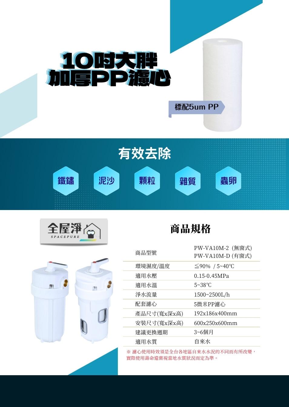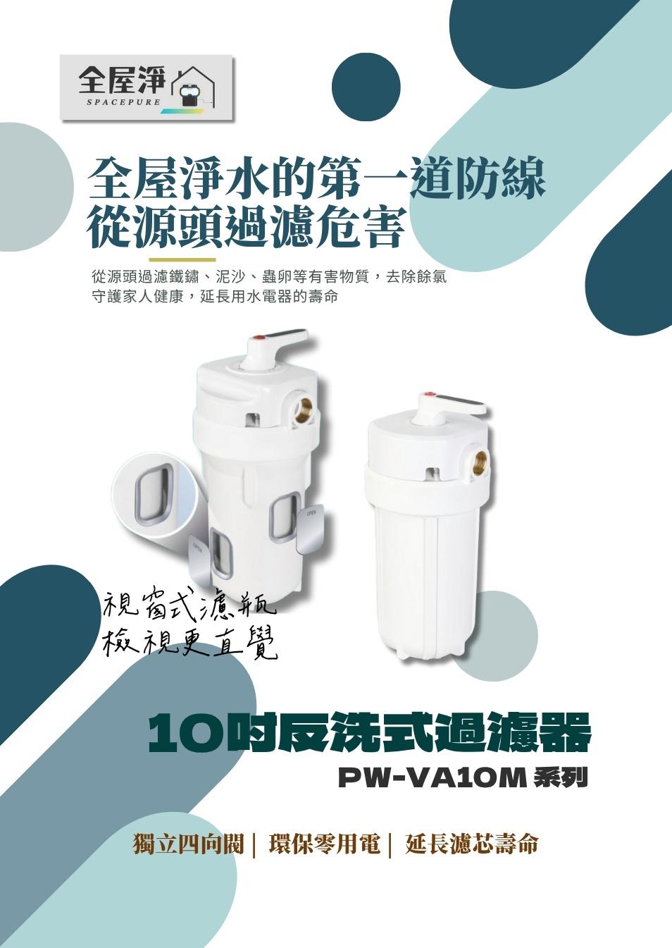【全屋淨】10吋反洗式過濾器 PW-VA10M 系列NT$13,800 – NT$14,800 有效阻擋雜質泥沙 、鐵鏽汙垢 、綠藻小蟲、大顆粒物 有效解決龍頭堵塞 、衣物變黃、熱水器變慢問題 提升電器使用效果和延長使用壽命 標配5um PP濾心 規格 反洗式過濾器-無窗(標配5um PP)反洗式過濾器-有窗(標配5um PP)請選取一個選項反洗式過濾器-無窗(標配5um PP)反洗式過濾器-有窗(標配5um PP)清除 【全屋淨】10吋反洗式過濾器 PW-VA10M 系列 數量 加入購物車 貨號: PW-VA10M 分類: --全戶淨水設備, 【全屋淨】 描述 額外資訊 規格 反洗式過濾器-無窗(標配5um PP), 反洗式過濾器-有窗(標配5um PP), 反洗式過濾器-無窗(升級中空絲膜), 反洗式過濾器-有窗(升級中空絲膜) 相關商品 特價 【全屋淨】SF-UD2-21L 潛曜系列-高效型全戶智慧軟淨一體機 (軟水+淨水一機雙效) | 全台服務 NT$69,800 原始價格:NT$69,800。NT$59,800目前價格:NT$59,800。 加入購物車 特價 【豪華淨水組合】宮黛GD600+全戶軟水PW-250+全戶淨水PW-200T NT$111,600 原始價格:NT$111,600。NT$79,800目前價格:NT$79,800。 加入購物車 【茗毅】砂濾控制器、軟水控制器–電子式控制閥頭(LCD顯示) NT$18,000 加入購物車 【全屋淨】全戶型淨軟一體 PW-SF-T12 (全戶過濾&軟水二合一) NT$63,000 加入購物車