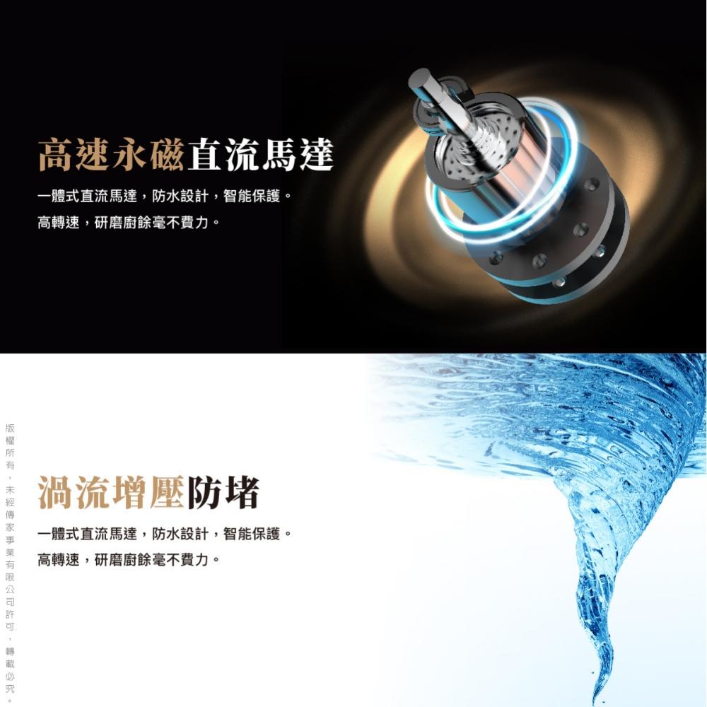 - 高效能研磨:可將廚餘研磨至0.2公分以下的細小顆粒