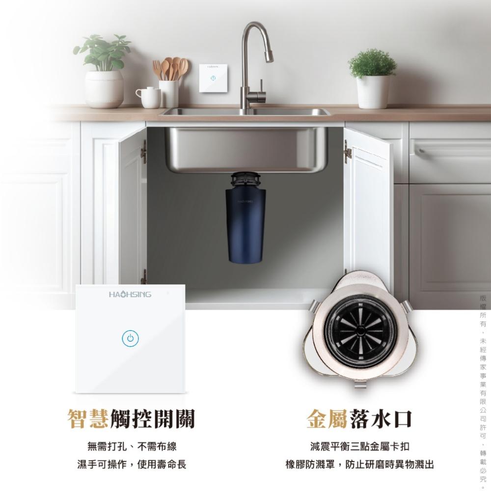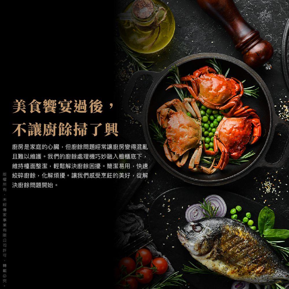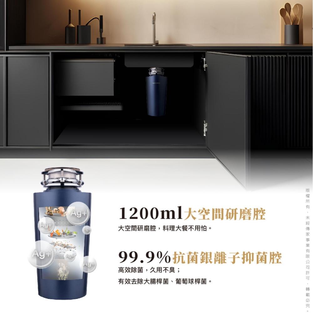 - 高效能研磨:可將廚餘研磨至0.2公分以下的細小顆粒
