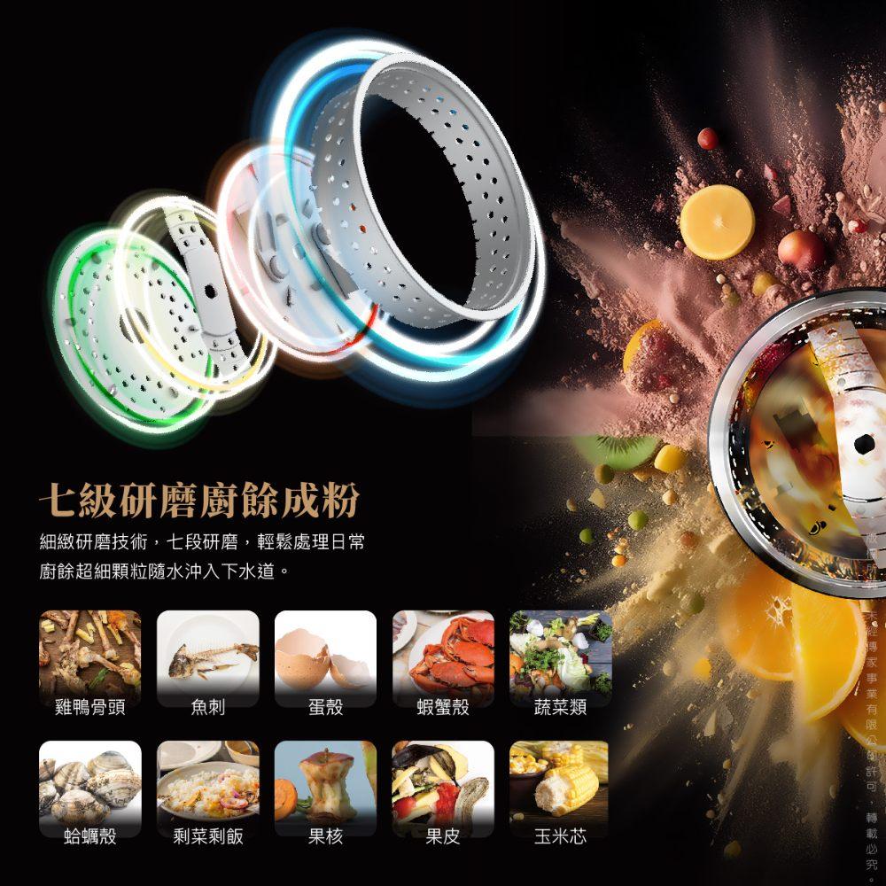 - 七級研磨:強力研磨功能,適合各種硬度的廚餘
