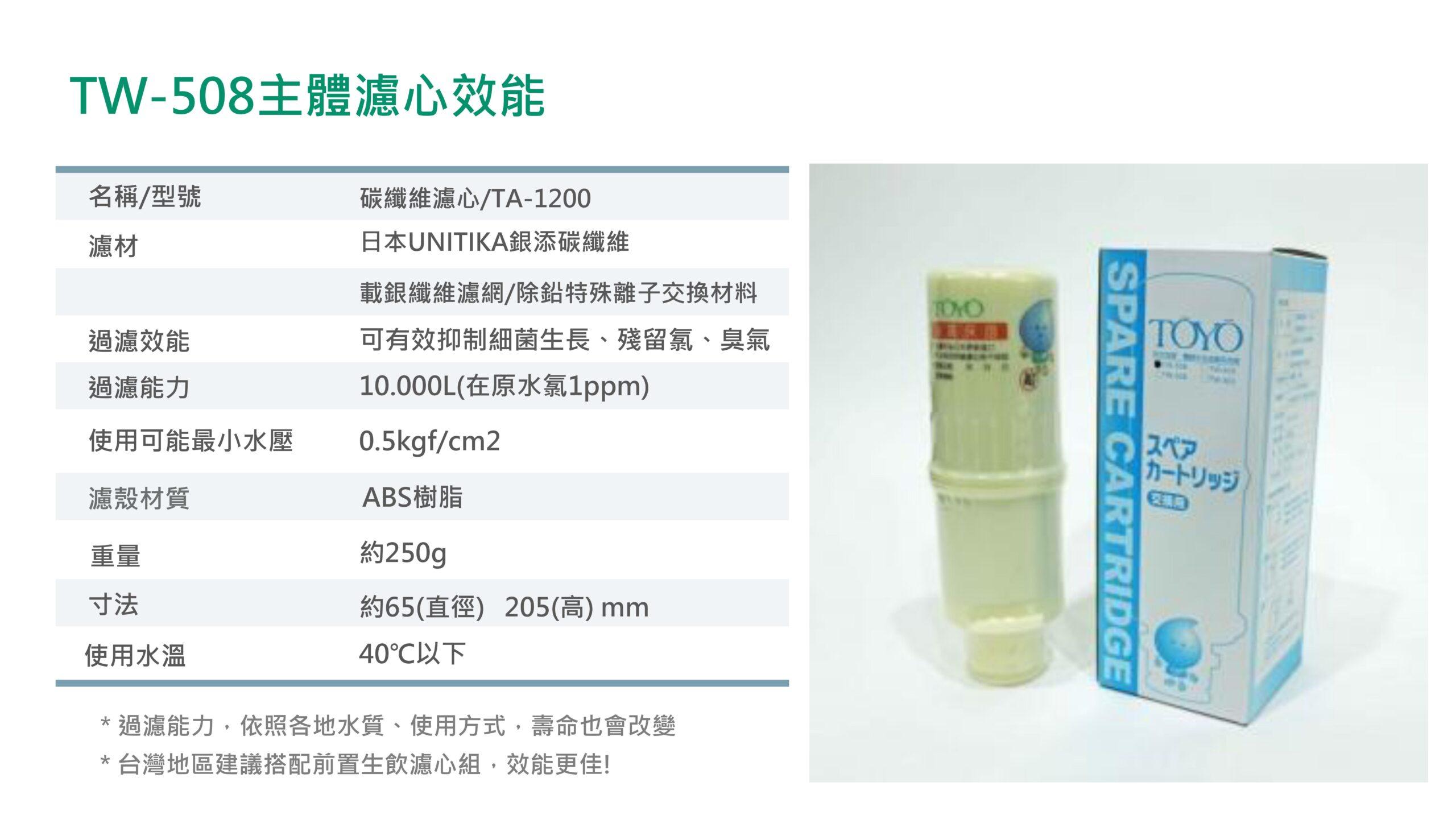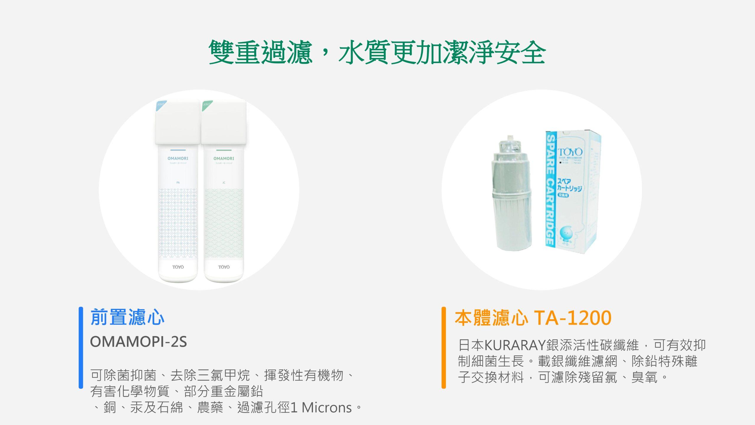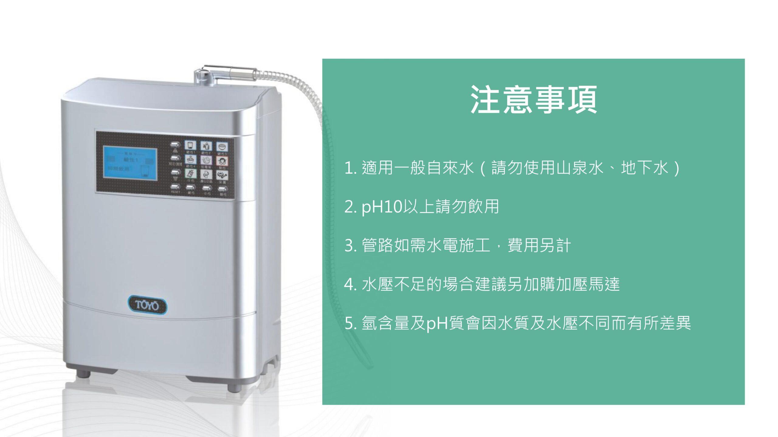 【TOYO】桌上型鹼性離子水生成器 TW-508NT$39,800 日本家庭保健 NO.1 鹼性離子水生成器 可切換 7 段酸鹼值,適合全家人的飲水習慣 濾心智慧提醒更換,安全又貼心 彩色液晶搭配圖示提醒操作功能 加購加鹽濾心,即可製作電解式次氯酸除菌水 【TOYO】桌上型鹼性離子水生成器 TW-508 數量 加入購物車 分類: TOYO | 東洋歐帝 描述 相關商品 特價 【TOYO】H plus觸控廚下型-鹼性離子水飲水機 H-5 NT$46,500 原始價格:NT$46,500。NT$39,800目前價格:NT$39,800。 加入購物車 【TOYO】桌上型鹼性離子水生成器 TW-308 NT$26,800 加入購物車 特價 【TOYO】H plus觸控廚下型-鹼性離子水雙溫飲水機 H-8 NT$64,500 原始價格:NT$64,500。NT$55,000目前價格:NT$55,000。 加入購物車 【TOYO】SPACO 觸控櫥下型-氣泡水冰溫熱飲水機 X-3 Pro (冰/溫/熱/氣泡水) NT$68,800 選擇規格 此產品有多種款式。 可在產品頁面選擇選項
